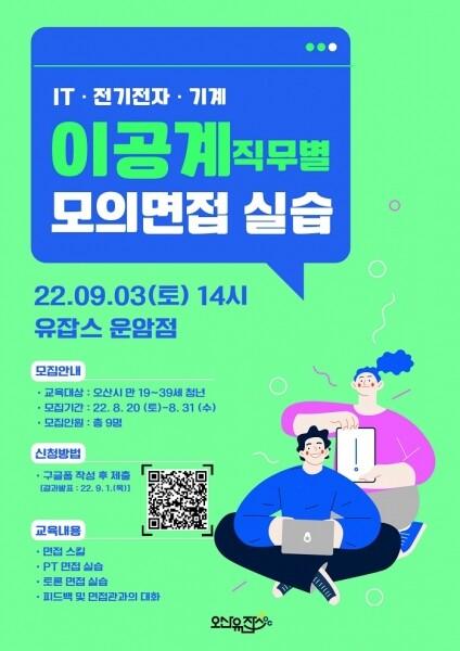시 관계자는 “유잡스에선 청년들이 마주한 취업난을 극복하기 위해 채용 실전 역량을 키우고 취업경쟁력을 높일 수 있는 다양한 프로그램을 상반기에 이어 하반기에도 제공할 계획이라고 전했다”며 “많은 청년들이 참여해 원하는 결과를 얻도록 다양한 프로그램 및 상담을 지속적으로 지원하겠다”고 말했다.