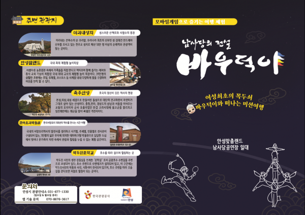바우덕이 게이미피케이션은 안성시와 한국관광공사 경인지사가 공동으로 개발한 콘텐츠로 ‘남사당의 전설, 바우덕이’를 테마로 기획됐다.