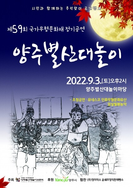 시 관계자는 “장기화된 코로나19로 힘들고 지친 일상을 흥겨운 탈놀이 공연을 통해 탈탈 털어버리고 풍성한 한가위를 맞이하길 바란다”고 말했다.