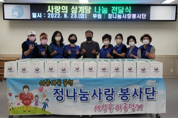 정나눔사랑봉사단은 매년 복지사각지대에 놓인 소외계층을 위한 지원사업을 통해 이웃사랑 나눔을 신청하고 있다.