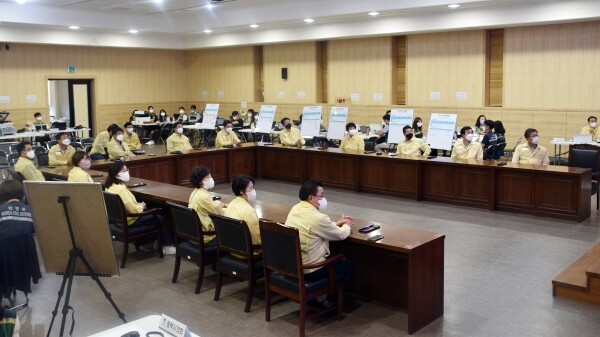 이날 유승영 의장과 의원들은 을지연습 주관 부서인 안전총괄과로부터 훈련 상황과 주요 일정 등을 보고받고 훈련에 참가한 공무원 등 관계자들에게 격려 물품을 전달했다.