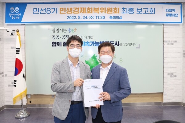 민선8기 최우선 과제인 민생경제 회복을 위해 경제정책, 소상공인, 일자리 분야의 민간전문가 그룹으로 구성되어 지난 7월부터 운영해온 광명시 민생경제회복위원회는 24일 시청 중회의실에서 최종보고회를 갖고 그동안의 활동 경과 및 10대 제안 사업에 대한 단계별 추진계획을 발표했다.