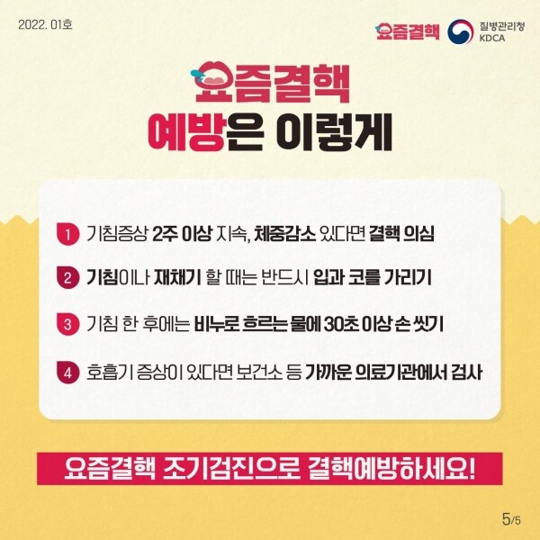 아울러 “결핵은 공기 중으로 감염되는 법정감염병으로 2주 이상 기침이 지속되는 등 호흡기 증상이 있다면 결핵검사를 받아 달라”고 당부했다.