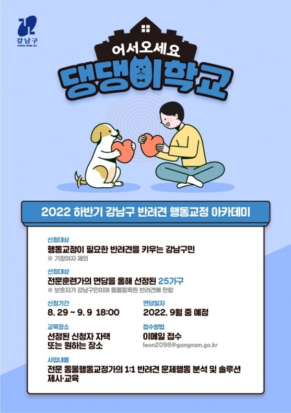 구는 희망자들을 대상으로 전문훈련사 면담을 진행해 최종 25가구를 선발할 예정이며 면담 일정은 별도로 안내한다.