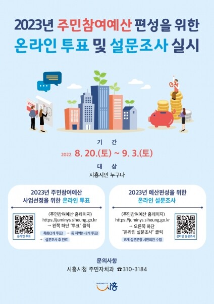 임병택 시흥시장은 “주민참여예산 투표 참여는 우리 동네에 필요한 사업을 주민 스스로 결정하는 중요한 과정”이라며 “청렴하고 공정한 시흥을 위해 이번 온라인 주민투표와 주민참여예산 한마당에 시민들의 적극적인 참여와 관심을 바란다”고 당부했다.