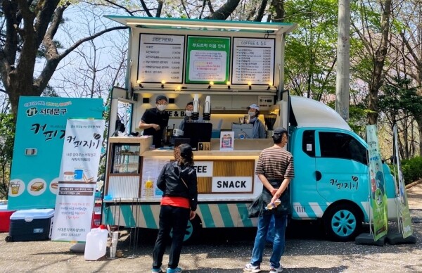 자활센터의 전문 교육 훈련을 받은 이들은 안산자락길 산복도로 옆 쉼터에서 매일 오전 10시부터 오후 5시까지 카페 푸드 트럭을 운영한다.