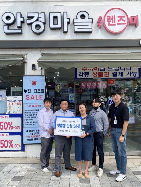 안경마을 렌즈미에서 7월 18일부터 29일까지 읍·면·동 맞춤형복지팀을 통해 추천받은 취약계층에게 맞춤형 안경 54개를 지원했다.