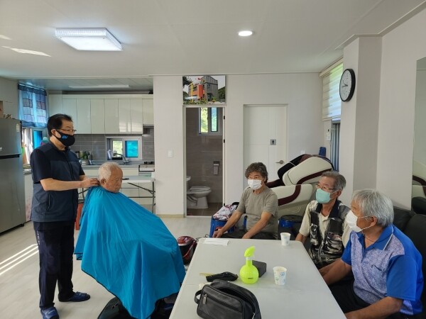 보산동 잔디이발관 김노경 대표는 매달 걸산동을 방문해 이발봉사를 하고 있으며 40년 이상 꾸준히 재능기부를 실천하고 있다.