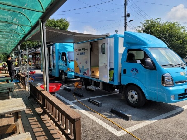 군 무한돌봄센터는 2.5톤과 1.2톤 빨래차 2대를 운영하고 있으며 차량에는 각 세탁기 4대와 세탁기 1대, 건조기 1대가 설치돼있다.