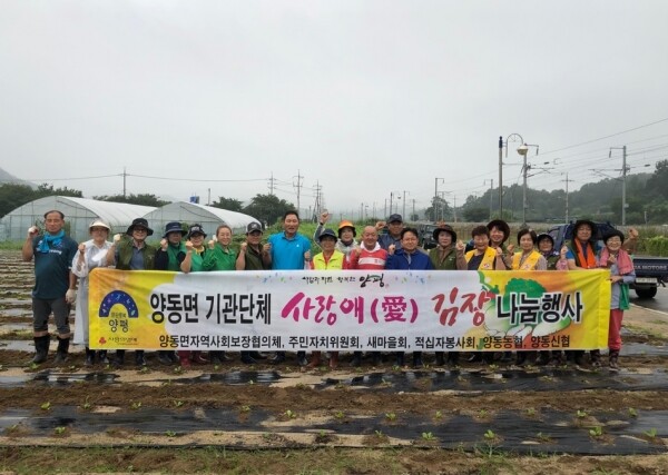 김윤호 양동면장은 “김장 나눔 사업 배추·무 모종 식재 행사에 참여해주신 기관·단체 회원님들께 진심으로 감사드린다”며 “앞으로도 지역 내 나눔 문화가 확산될 수 있도록 많은 관심과 적극적인 참여 바란다”고 말했다.