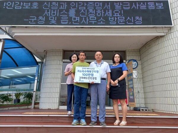 이날 전달받은 성금은 경기사회복지공동모금회 강하면 계좌로 접수돼 면사무소를 통해 저소득 수해 피해 가구에 지원될 예정이다.