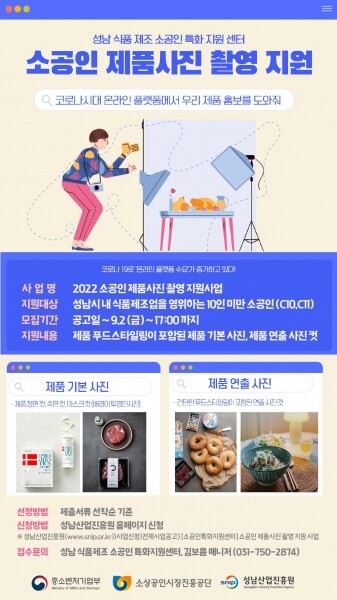 성남산업진흥원 관계자는 “본 지원사업을 통해 성남시 관내 다양한 식품제조 소공인들의 매출 증대에 도움이 되길 기대한다”고 밝혔다.