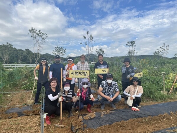 이날 참가자들은 구슬땀을 흘리며 흙을 고르고 비닐을 씌워 밑작업을 마무리했고 배추는 오는 10월 이후 수확할 예정이다.