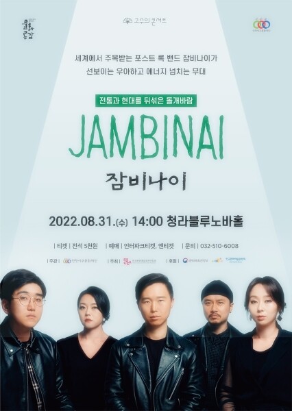 이번 공연은 한국 전통음악과 현대 대중음악의 매력적 요소를 엮어낸 ‘잠비나이’의 우아하고 에너지 넘치는 무대를 감상할 수 있다.