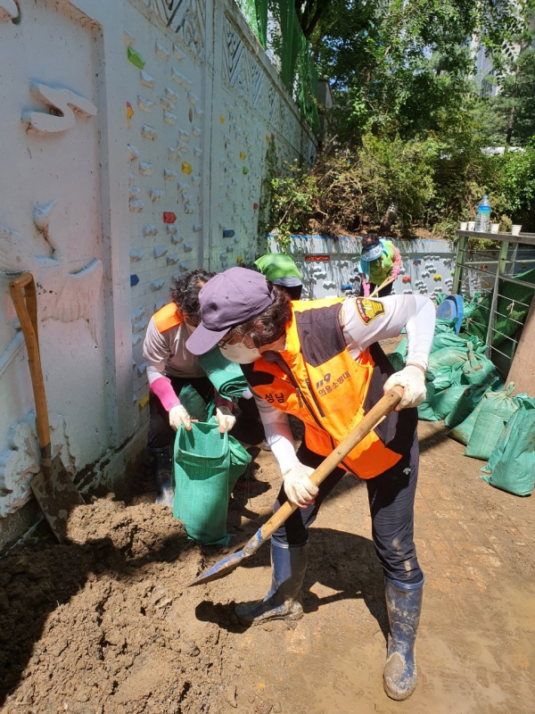 의용소방대는 이번 폭우로 큰 피해를 입은 상대원 공단 일대 및 운중동 오피스텔 등을 찾아와 토사물 제거, 오염물 청소 및 폐기물 운반 등 봉사활동에 참여해 일상으로의 복귀에 힘을 보태고 실의에 빠진 수재민을 위로했다.