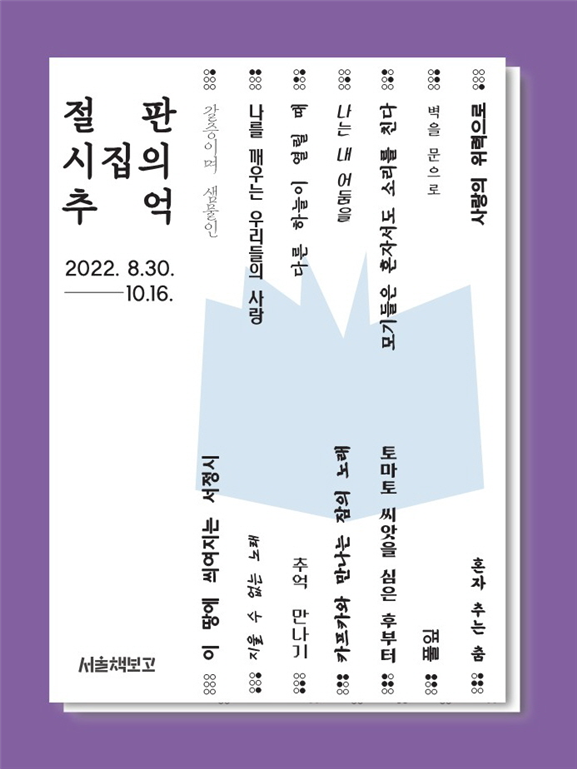 또한 전시에서 도서를 구입한 시민에게는 ‘절판 시집의 추억전’을 기억할 수 있는 레트로 종이봉투에 책을 담아 추억을 더 해줄 예정이다.