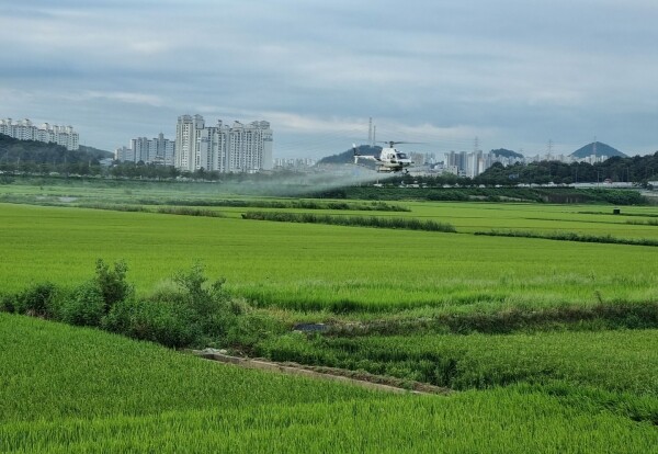 시는 농업인 만족도 향상과 시민 불편을 최소화하기 위해 집단재배지는 유인헬기를 통해, 아파트 밀집지역 및 학교 인접지역은 드론 및 무인헬기를 이용한 지역 맞춤형 방제를 추진해왔으며 지난해에 이어 올해도 유기농업자재 공시제품을 이용했다.