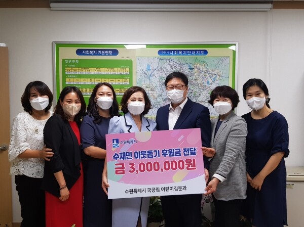 성금은 수원시사회복지협의회 지정기탁 형식으로 수원시에 전달됐다.