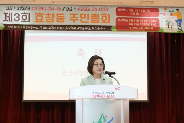 박희영 용산구청장은 “주민이 직접 지역 현안을 발굴하고 해결하는 과정 속에서 지방자치가 발전할 것”이라며 “주민총회에서 투표로 결정된 사업들이 성공적으로 추진될 수 있도록 행정적 지원을 아끼지 않겠다”고 말했다.