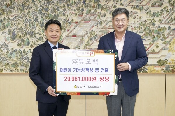 ㈜듀오백은 코로나19 장기화로 온라인 수업이 늘어나고 있으며 어린이들이 이전과 달리 친구들과 마음 놓고 어울리지 못한 채 집안에서 머무는 시간이 길어진 점 등을 고려해 기부를 결정했다.