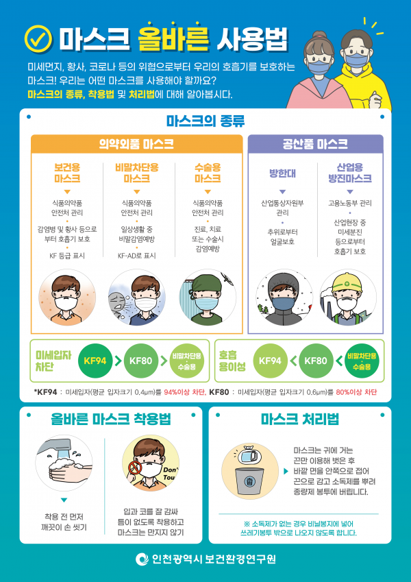 특히 코로나19 등의 감염원으로부터 호흡기를 보호하는 마스크의 종류, 착용법 및 처리법 등 마스크와 관련한 유용한 정보를 포함하고 있어 시민들의 마스크 선택 및 사용에 도움을 줄 수 있을 예정이다.