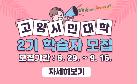 고양시 관계자는 “지난 1기 과정 운영 후 만족도가 높았던 만큼 2기 과정도 기대가 크다 더 많은 시민이 참여하는 평생학습프로그램으로 정착되기 바란다”고 밝혔다.