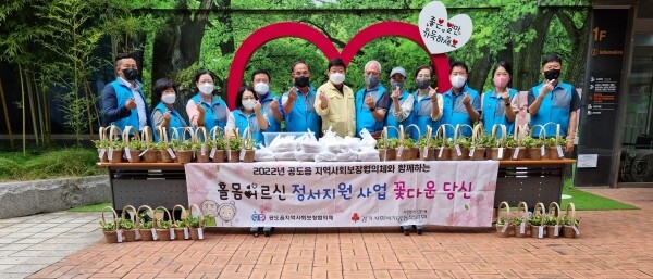 [뉴스써치] 지난 25일 공도읍지역사회보장협의체는‘꽃다운 당신’8월 활동을 위해 15명의 위원들이 행정복지센터에 모여 함께 화분을 만들고 대상 어르신 가정방문을 통해 화분전달 및 안부확인을 진행했다.