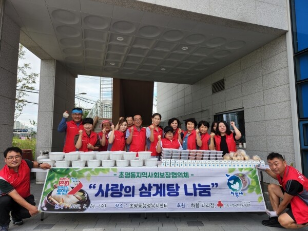 원동에 위치한 화성축산 하림 대리점에서 기탁한 닭 50마리와 초평동 지역사회보장협의체 실버 텃밭에서 재배해 담은 무장아찌, 열무김치 등을 이용해 협의체 위원들이 음식물을 준비했다.