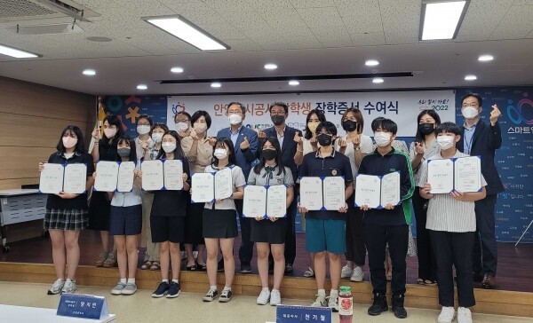 지난 25일 열린 장학증서 수여식은 안양도시공사 강성혁 개발사업본부장, 안양시 인재육성재단 천기철 대표이사 등이 참석한 가운데 진행됐다.