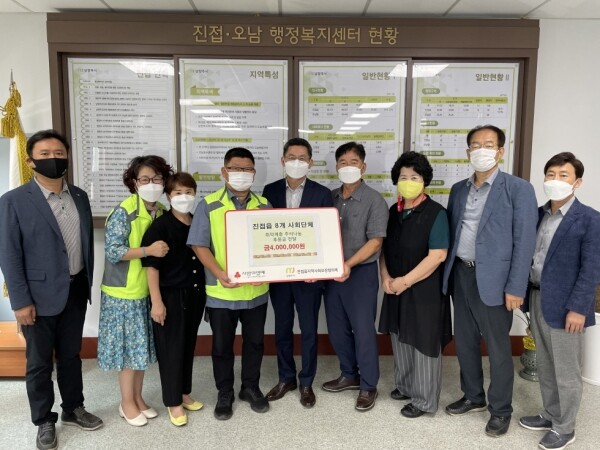 이번 후원금은 진접읍 8개 사회단체가 십시일반 정성을 모아 마련했으며 추석명절 관내 취약계층 나눔활동을 위한 지원금으로 쓰일 예정이다.