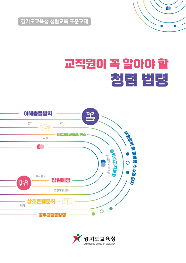 청렴교육 표준교재는 청렴교육 강사지원단이 청렴 법령을 쉽게 이해할 수 있도록 현장 사례를 중심으로 구성했으며 도교육청 누리집 ‘청렴한 경기교육’에서 누구나 볼 수 있다.