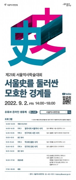 제21회 서울역사학술대회는 9월 2일 오후 2시부터 서울역사편찬원 유튜브 채널을 통해서 생중계된다.