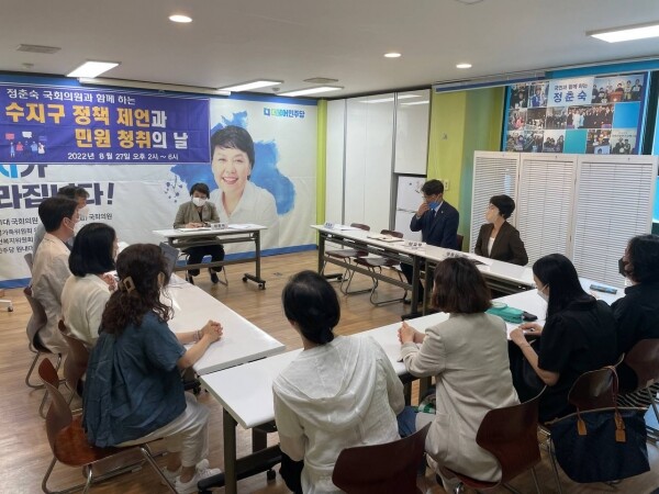 민원이나 정책제언이 있는 수지 주민들은 정춘숙 의원 지역사무실로 연락해 사전 예약을 하면 참여가 가능하다.