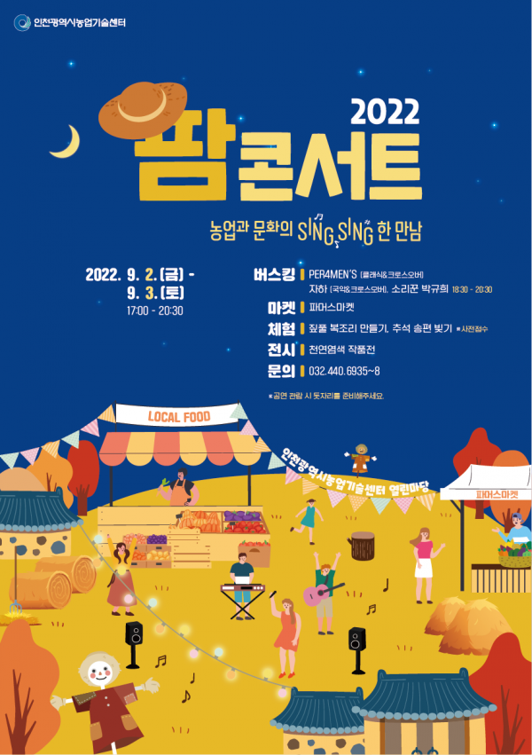 조영덕 인천시 농업기술센터 소장은 “민속명절 추석을 맞아 가족과 함께 마켓, 공연, 전시, 체험 등 다양하게 즐길 수 있는 풍성한 행사를 마련했다”며 “행사를 함께 즐겨주시고 우리 농산물과 인천의 로컬푸드를 많이 사랑해 주시기 바란다”고 말했다.