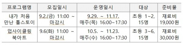 초등학교 저학년부터 고학년까지 총 30명의 어린이를 대상으로 9월부터 열린다.