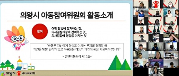 한편 아동참여위원회는 아동의 4대 권리 중 참여권을 보장하고 유니세프 아동친화도시 조성 10가지 원칙 중 아동의 참여원칙을 실천하기 위해 구성된 아동 참여기구로 지난 2020년 제1기 아동참여위원 45명을 구성해 정기회의 참여 및 분과별 활동을 진행했으며 작년 9월에는 의왕시와 의왕시의회에 ‘의왕시 아동참여기구 정책제안문’을 전달하는 등 활발한 활동을 해온 바 있다.