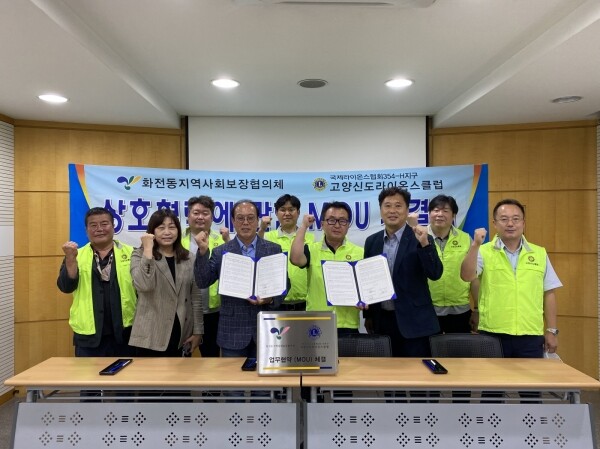 이재영 고양신도라이온스클럽 대표는“이번 협약식 체결을 통해 오랫동안 지역사회를 위해 봉사를 해온 우리 클럽이 화전동 주민을 위해 보다 적극적으로 봉사할 수 있는 계기를 마련할 수 있어 더없이 기쁘고 관내 취약계층 지원을 위해 최선을 다하겠다”고 말했다.