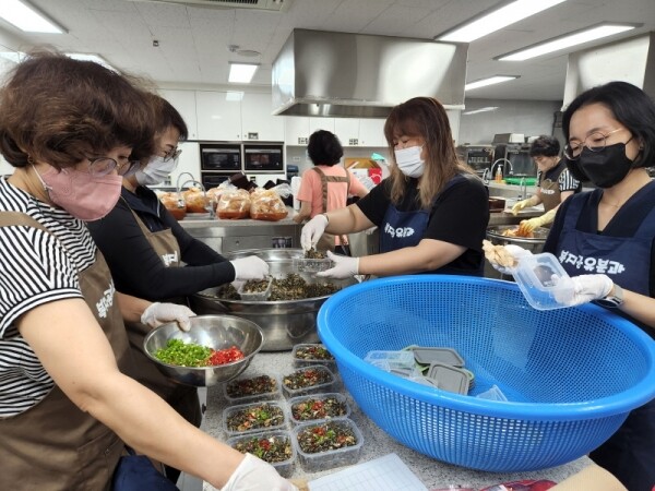 이날 위원들은 일상 방역수칙을 준수한 가운데 가좌2동 지하 공유부엌에 모여 멸치볶음, 배추김치 등 반찬을 정성껏 만들었다.