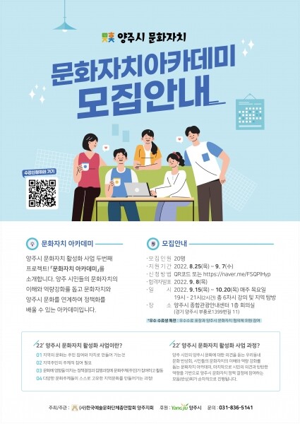 모집대상은 문화자치에 관심 있는 양주시민이라면 누구나 신청할 수 있다.