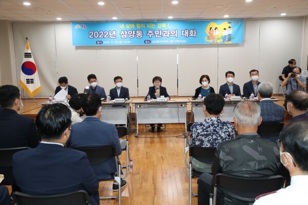 29일 삼양동 주민센터에서 열린 첫 주민과의 대화는 지역현안에 대한 주민건의사항을 듣고 답변하는 방식으로 진행됐다.