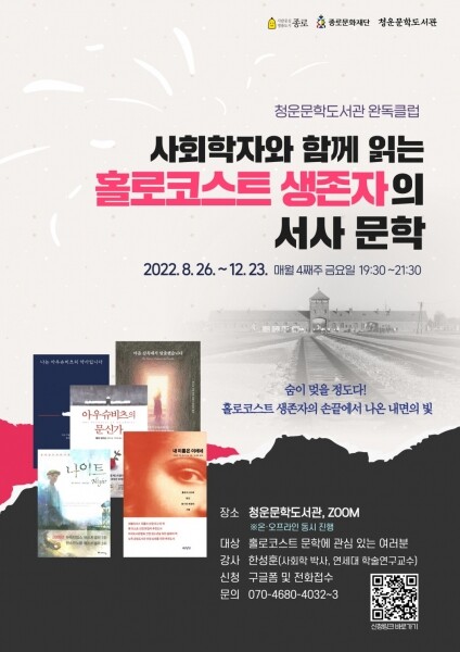 지난 26일을 시작으로 오는 12월 23일까지 매월 넷째 주 금요일 청운문학도서관에서 열리는 ‘‘사회학자와 함께 읽는 홀로코스트 생존자의 서사 문학’ 완독클럽’이다.