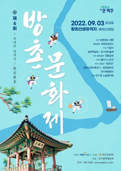 이귀순 문화예술과장은 “황희선생 유적지에서 개최되는 방촌문화제를 통해 선생의 생애를 돌아보고 파주가 역사문화 자원이 풍부한 고장임을 널리 알리는 기회로 삼겠다”고 말했다.
