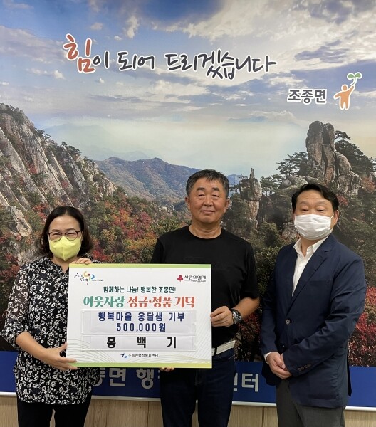 이날 기탁된 성금은 조종면 행복마을 옹달샘에 주민이 필요한 물품을 구입해 관내의 취약계층이 이용할 수 있도록 할 계획이라고 전했다.
