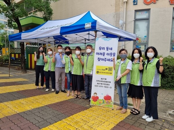 송산1동 지역사회보장협의체와 함께 진행한 ‘무엇이든 물어보세요’상담 부스에서는 복지서비스 상담 복지사각지대 발굴 위기가구 의뢰 등 종합적인 상담을 실시했으며 송산1동 나눔리더 정기후원자 모집 홍보를 위해 안내문과 홍보물품을 함께 배포하며 복지위기 주민에 대한 신고를 독려해 큰 눈길을 끌었다.