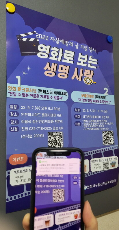 또한 다음달 7일부터 30일까지 서구정신건강복지센터 홈페이지에서 나만의 힐링 영화를 추천하는 댓글 이벤트 ‘무비톡톡’을 열어 추첨을 통해 소정의 상품을 제공한다.