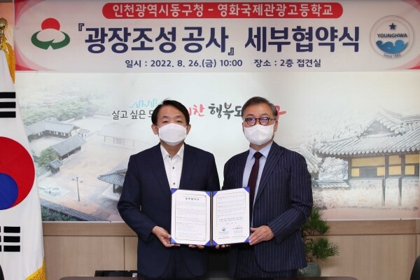 구는 이번 협약에 따라 영화고등학교에서 제공하기로 한 폭 5미터, 길이 40미터의 토지에 휴게데크, 의자, 조형가벽 등을 설치해 지역 주민과 학생들 누구나 이용할 수 있는 공간을 조성할 계획이라고 전했다.