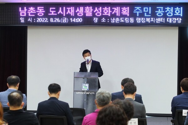 이날 남촌도림동 행정복지센터에서 열린 공청회에는 지역주민과 관계 공무원, 구청장, 국회의원, 구의원, 시의원 등 50여명이 참석했다.