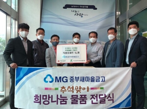 MG중부새마을금고 박백순 이사장은 “추석을 앞두고 어려운 이웃을 위해 작은 힘이라도 보탤 수 있어 기쁘게 생각한다.