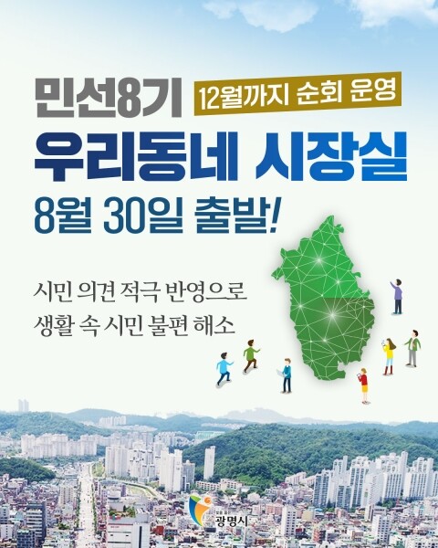 시는 민선 8기에도 우리동네 시장실을 통해 주요 사업에 시민들 의견을 적극적으로 반영해 실생활 속 시민 불편을 해소하는 한편 더 나은 광명시의 미래 100년을 만들어 간다는 방침이다.