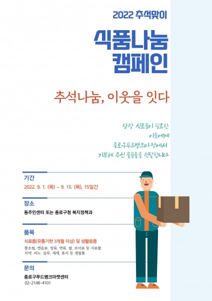 기부 물품은 9월 16일 종로구푸드뱅크마켓센터를 통해 지역 곳곳의 저소득 주민에게 전할 예정이다.
